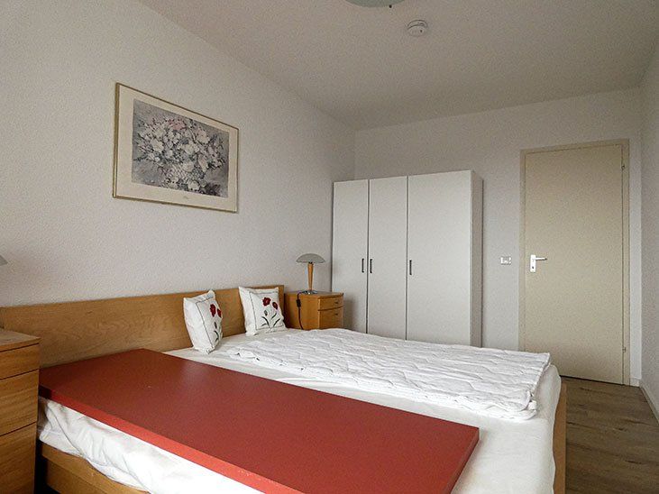 Im Eingangsbereich der Wohnung befinden sich linker Hand ein praktischer Garderobenschrank. Hier wäre stattdessen auch die Unterbringung einer
